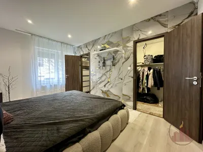 - Szobákban melegburkolat, a felnőtt hálóból külön nyílik egy női és egy férfi gardróbszoba