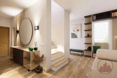 A bejárati előszobából nyílik a ház szíve: egy tágas, 41,85 m²-es, egybenyitott nappali-étkező-konyha, amely déli tájolásának és nagy üvegfelületeinek köszönhetően egész nap természetes fénnyel telik meg. Az amerikai konyhás elrendezés modern, praktikus és társasági életre is ideális.