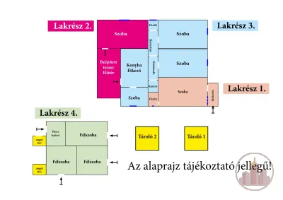 - Lak Részenként változó belmagasság (282 - 260 - 240 cm)